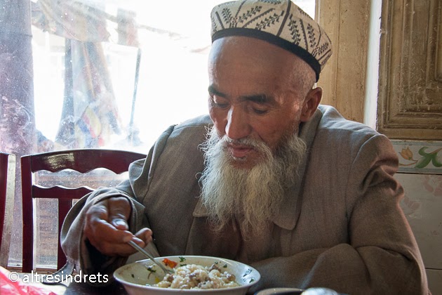 Després de deixar les coses a l’habitació de l’hotel, vam anar a un restaurant del centre de la vella Kaixgar. Era un d’aquests restaurants que no necessiten anunciar que estan oberts des de fa moltes dècades, doncs a l’entrar al local ja es respirava aquesta antiguitat. Era com traslladar-se a una altra època.